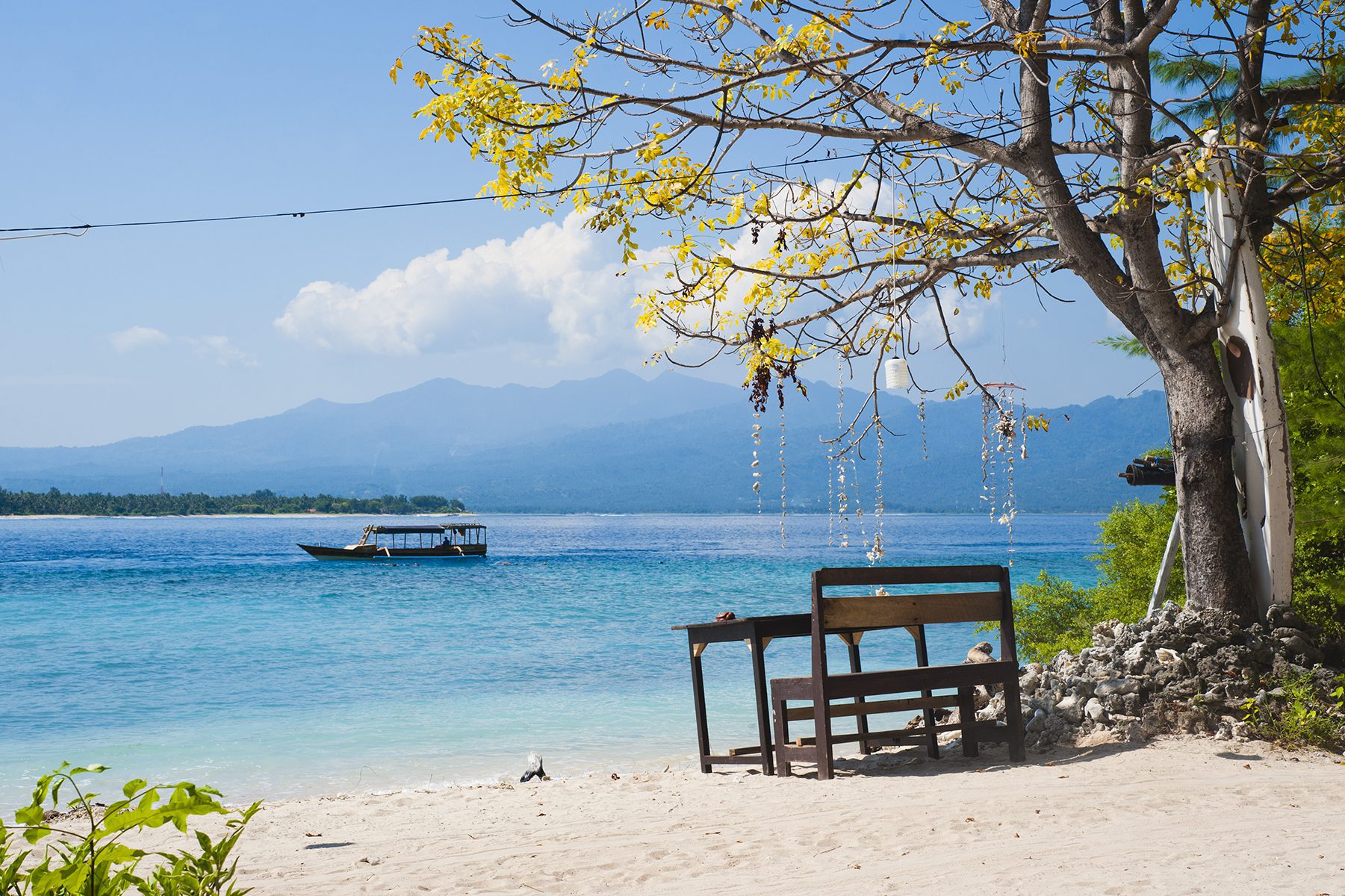✔️ Afslapning ved stranden i Lombok med udsigt til Mount Rinjani
